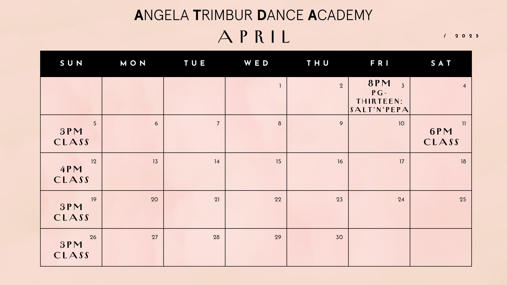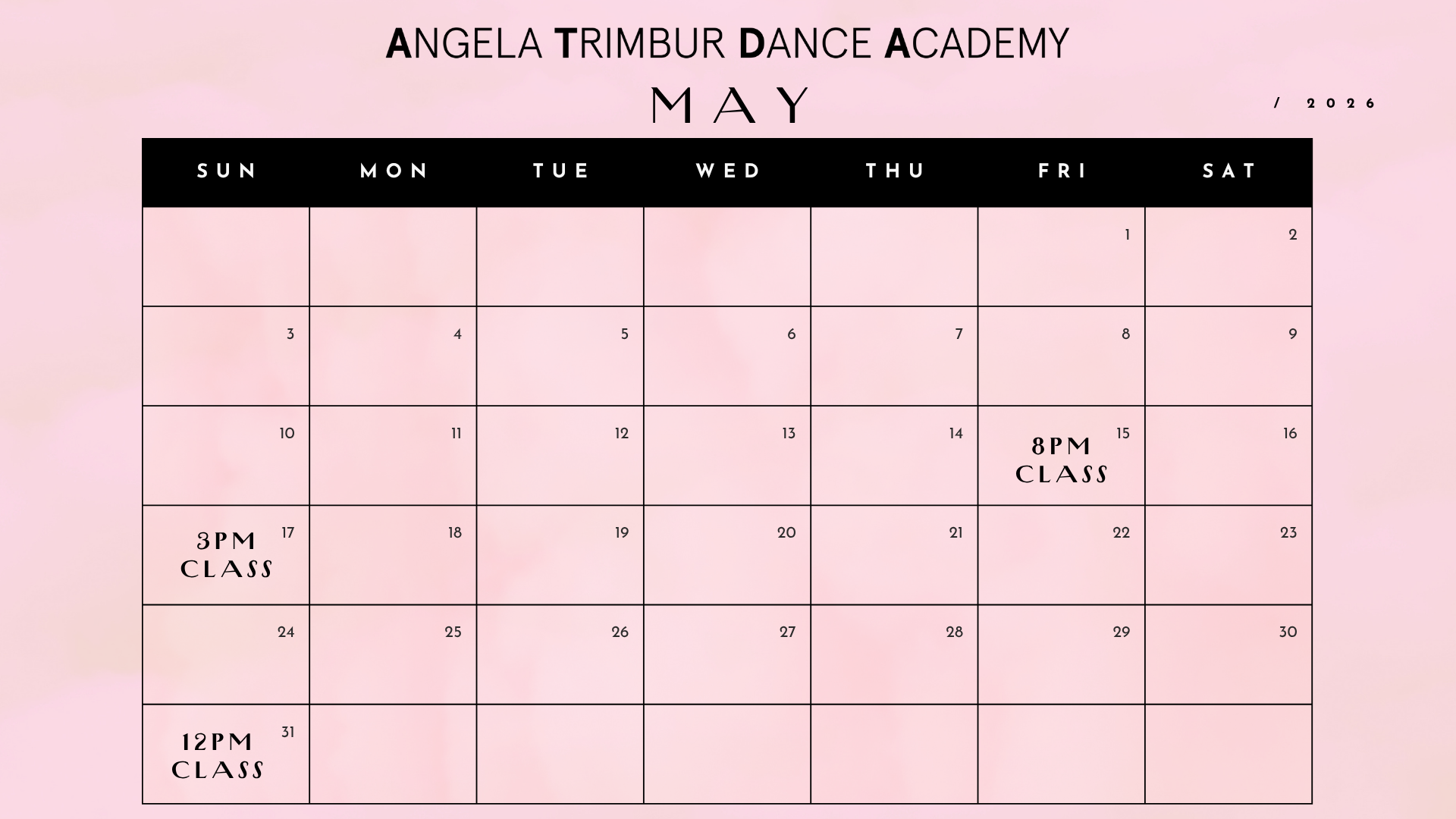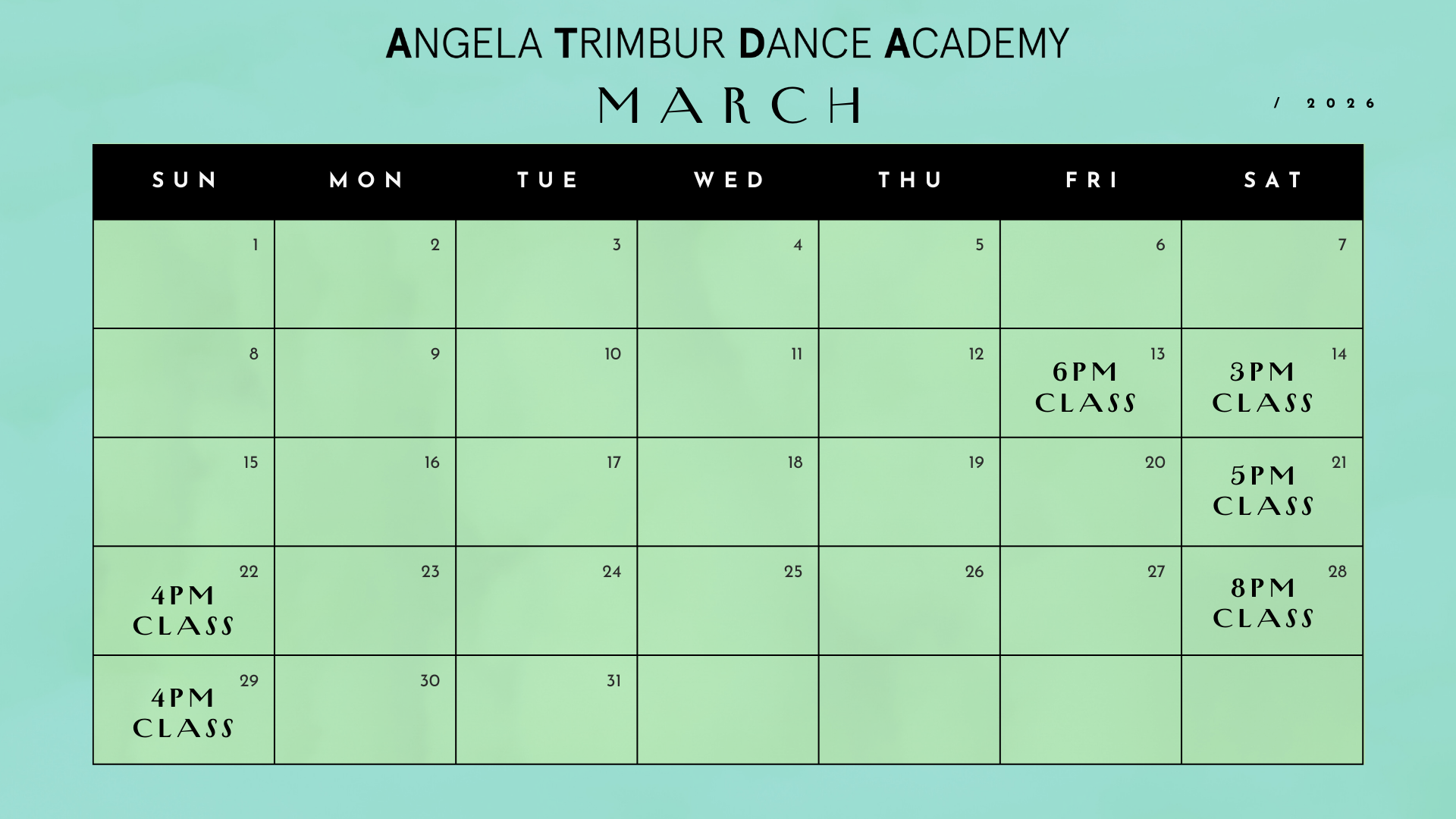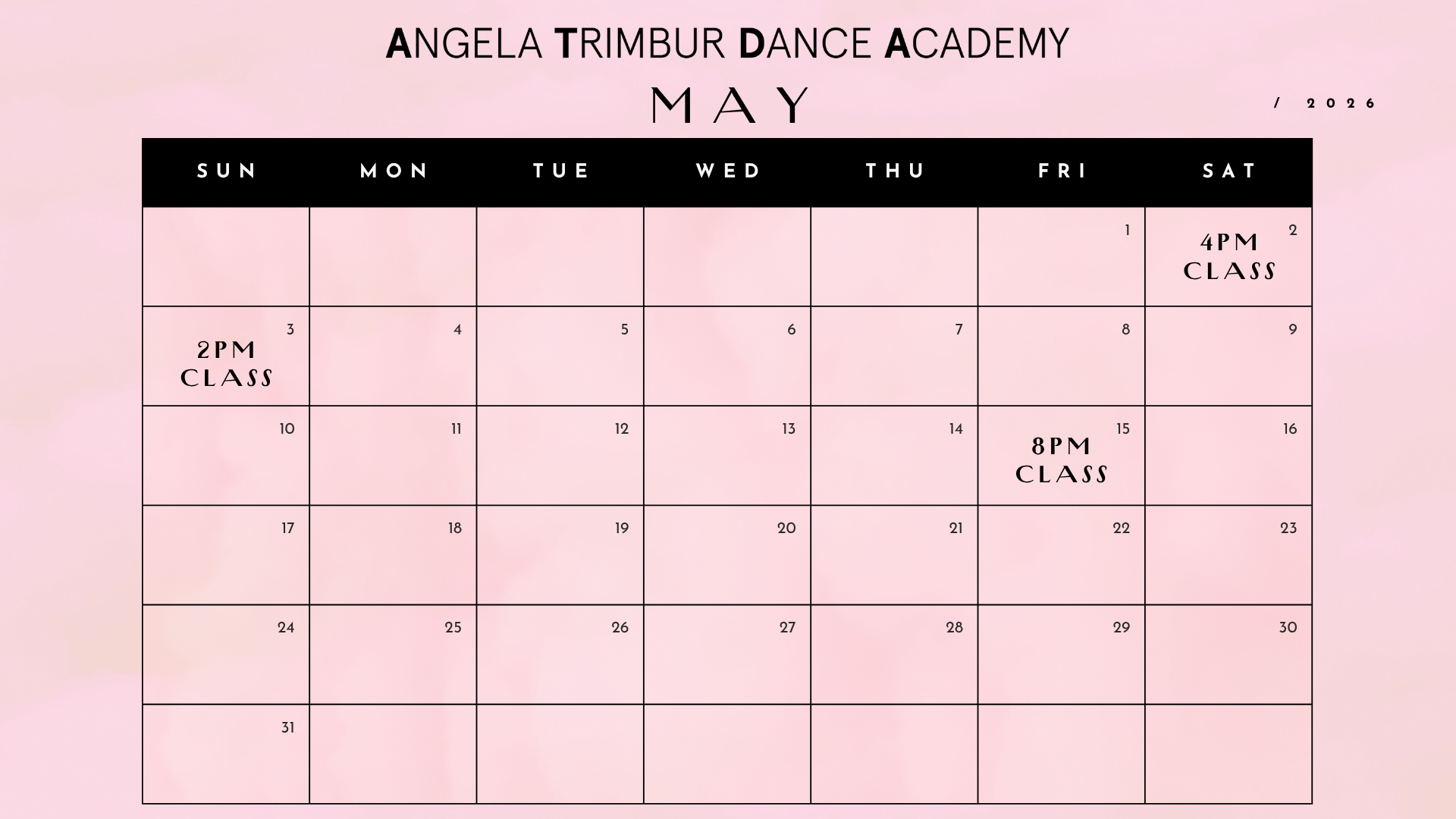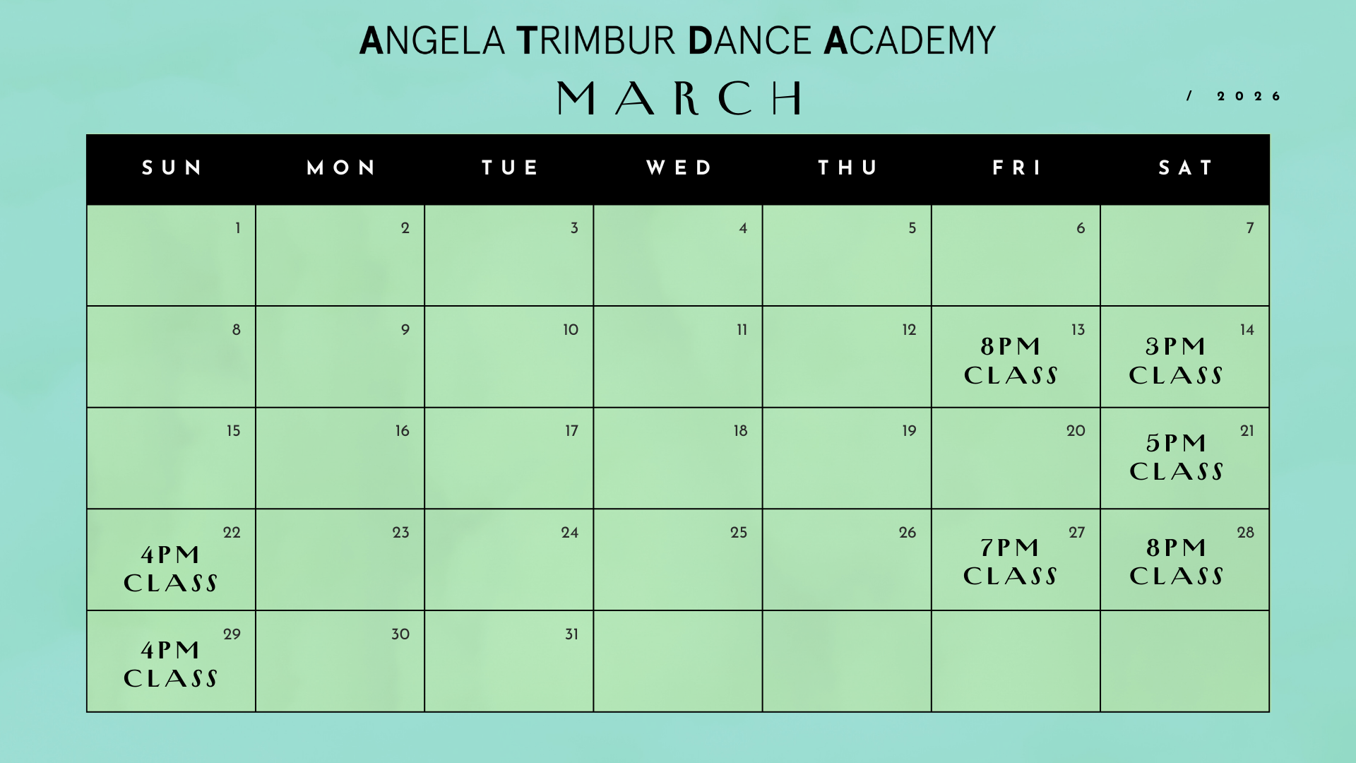 *save the dates class ticket links go live EVERY TUES at NOON for classes that week*
