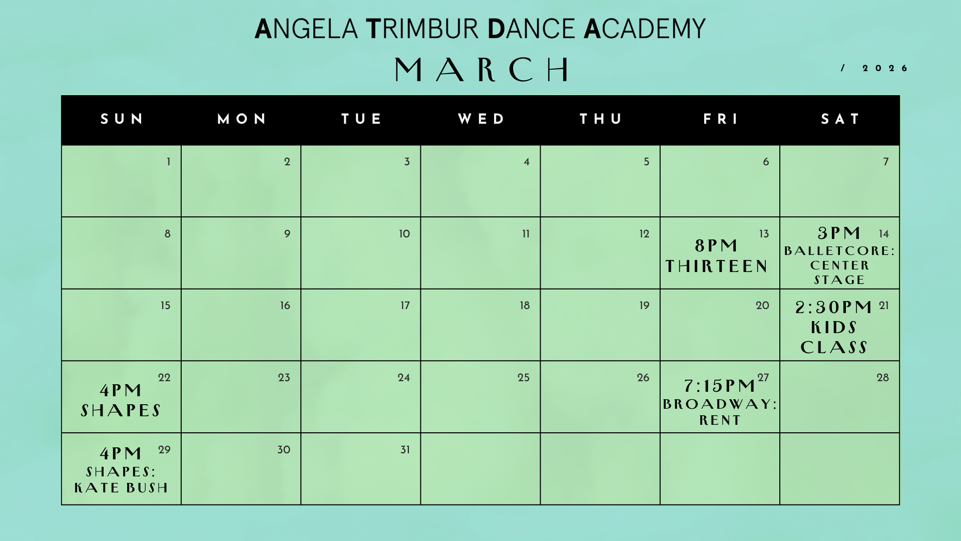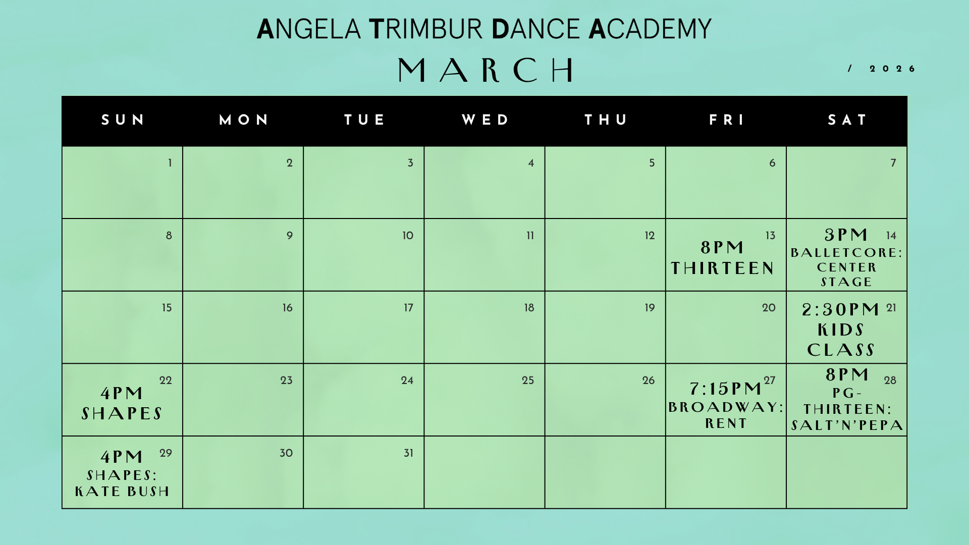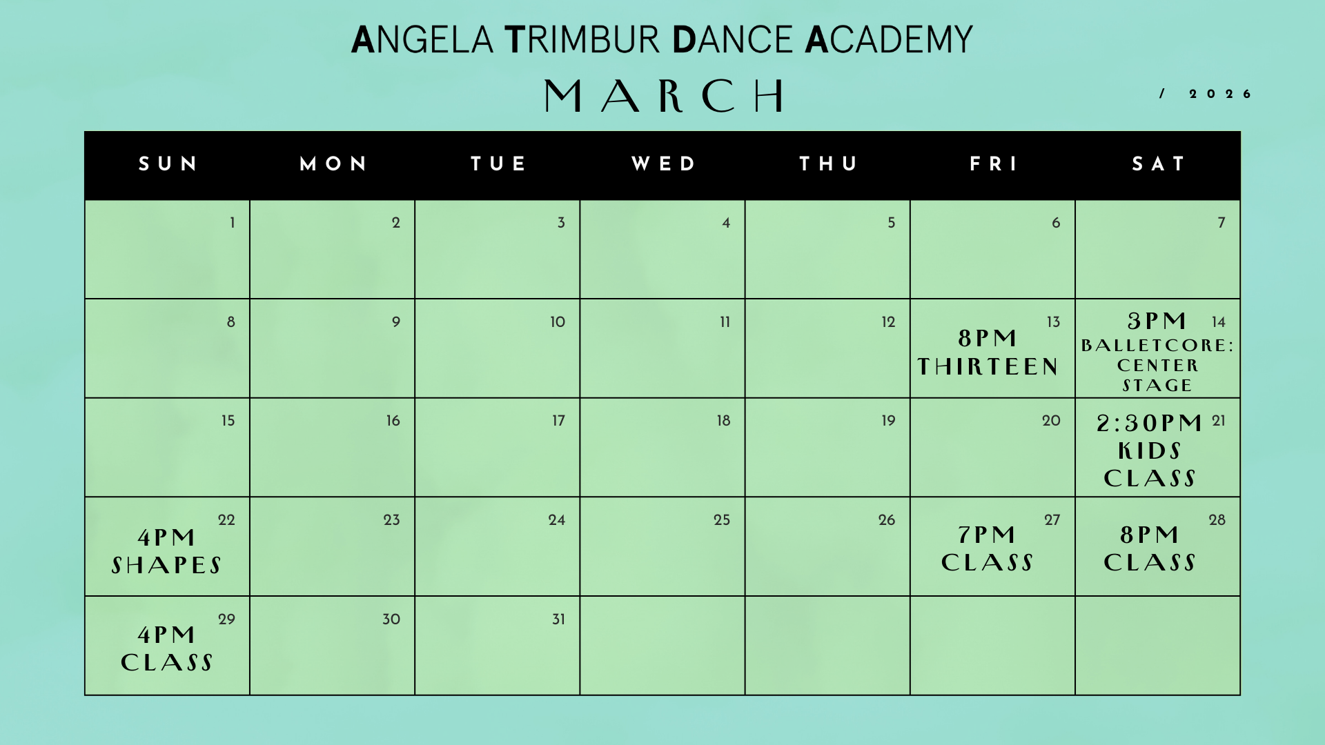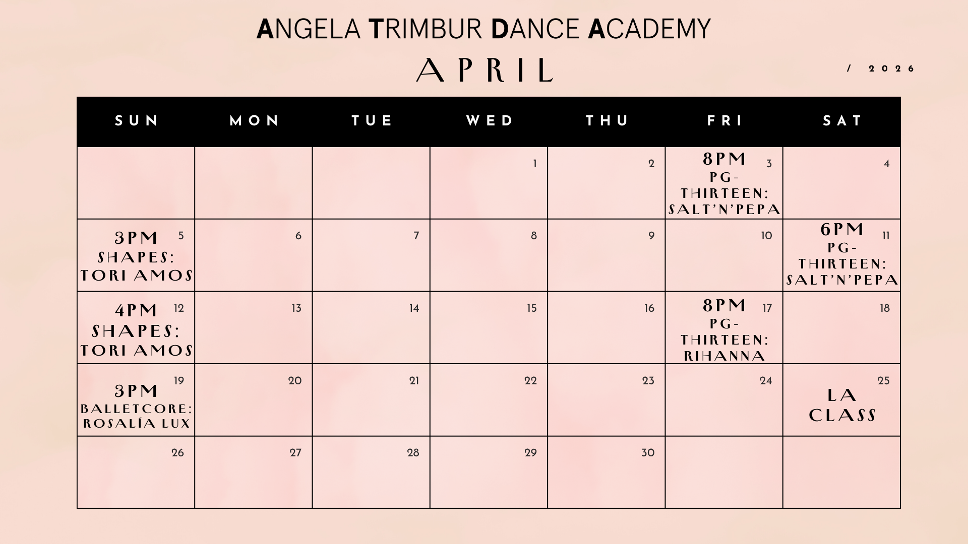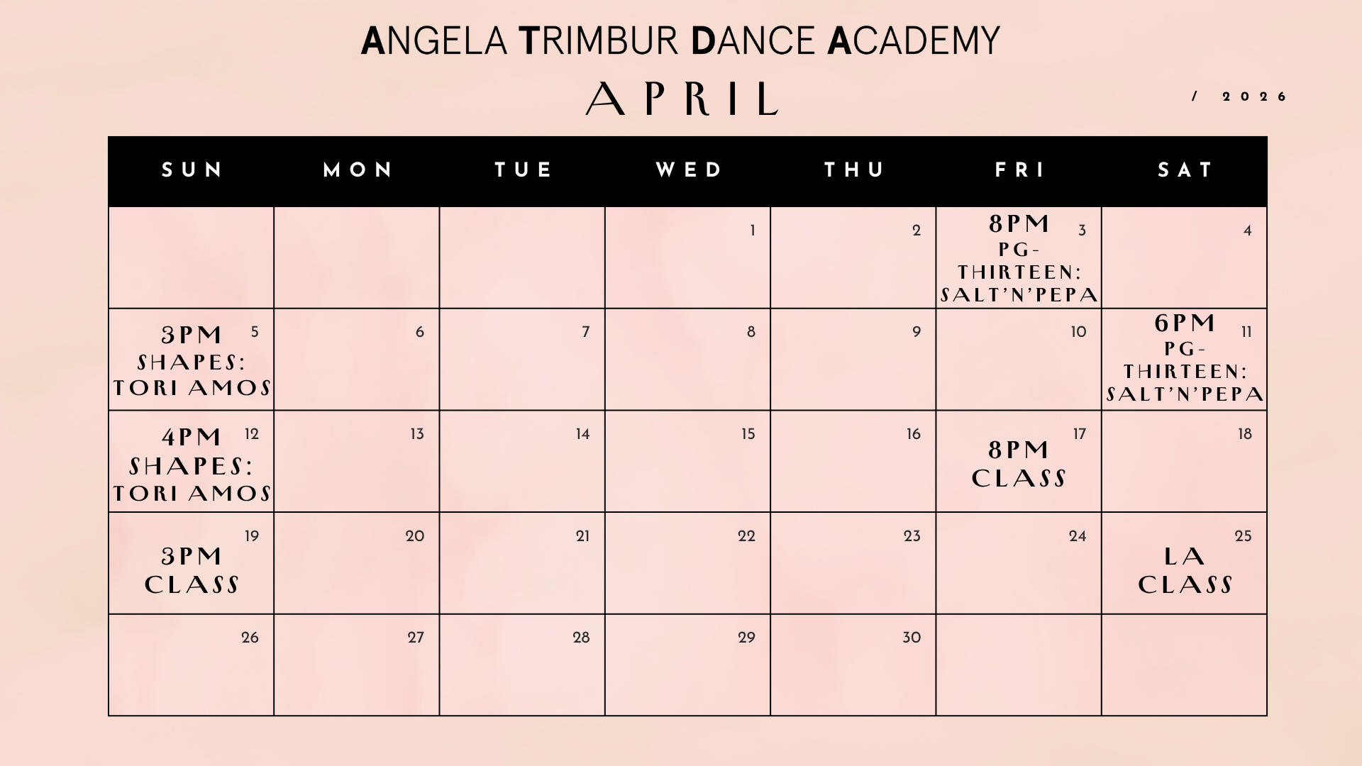 *save the dates class ticket links go live EVERY TUES at NOON for classes that week*